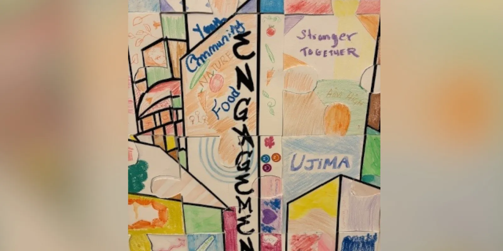 An interactive art activity brought everyone together. Participants decorated puzzle pieces with pencils and water colors, and words and thoughts about what collective resilience means to their organization. Each vibrant and unique piece created a large puzzle based on the artwork “Community” by MassArt students Kobe Christie, Shaniel Hernandez, Giselle Rodriguez, Derrick Rogers Jr., and A’myah Williams.