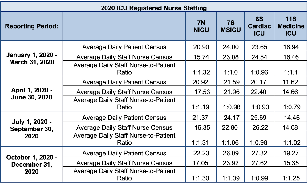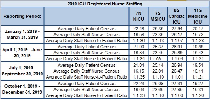 Please click below for the staffing ratios in each of our intensive care units (ICUs) at Boston Children’s Hospital.