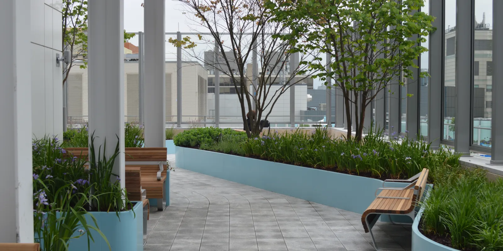 Early on, your child’s nurse will help accompany you and your child on a walk. Our goal is to have your child up and moving at least three times a day. Once it is safe to do so, you and your child can walk without assistance. You can make walking fun by checking out our playrooms, and by exploring our many gardens while on your recovery pathway. The Wishingstone Garden is just outside the Hale Family Building. The Berenberg Garden is inside the main hospital building, on the first floor. Other interior gardens are on floors 8 and 10 of the Hale building. And you can take in amazing views of Boston from gardens on the rooftops of the Hale and main hospital buildings.